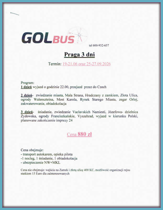 Praga 19-21.06 oraz 25-27.09.2026